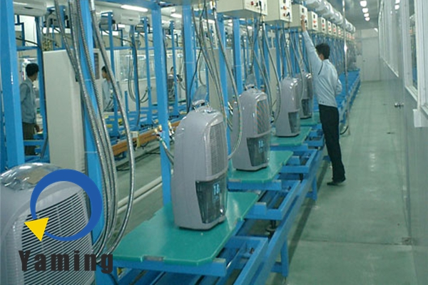 The conveyor line focuses on protecting precision filters and electrical components during transportation and warehousing. The qualified purifier is placed in a tampon bag and then packed into a custom-sized carton. The body and accessories (remote control, manual) are fixed with pearl cotton to avoid damage. The label on the box marks the model number, purification level, production batch and handling warnings (prevent moisture, be careful during transportation). The automatically guided vehicle transports the boxes to the smart storage area, sorting them by “scene type + air volume”. The system updates inventory in real time and monitors temperature/humidity to prevent filter damage due to moisture, ensuring a seamless process from production to warehouse.